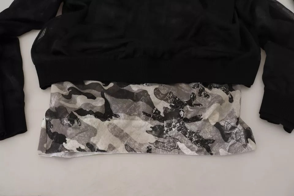 Dolce & Gabbana Black Leopard Full Zip Hooded Sweatshirt Sweater