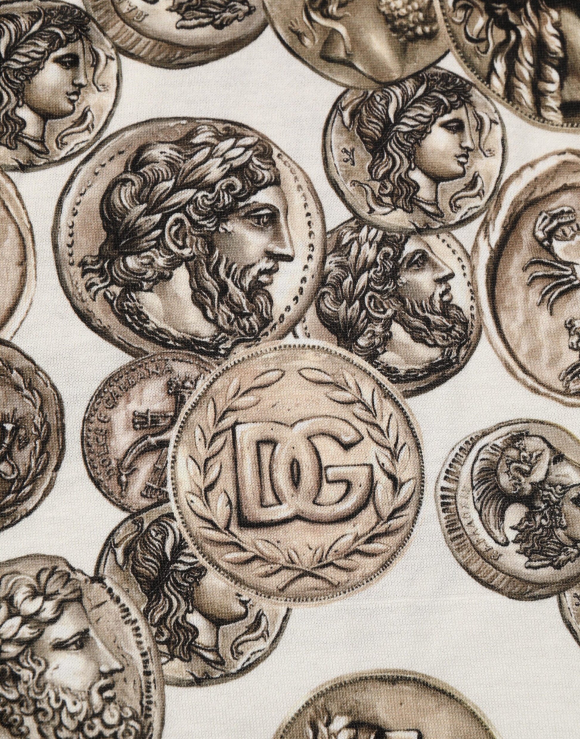 Dolce & Gabbana White Coin Print Cotton Crew Neck Men T-shirt