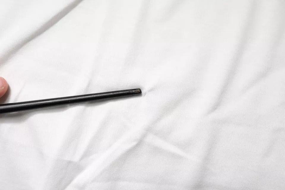 This item has a minor defect, there are stains and repaired holes on the front and back side (see pictures for details).